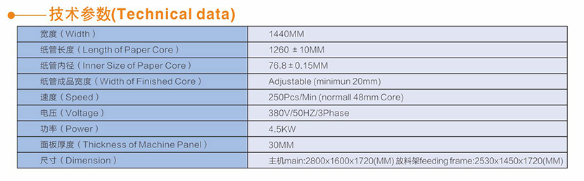 全自動(dòng)切紙管機(jī)設(shè)備技術(shù)參數(shù):